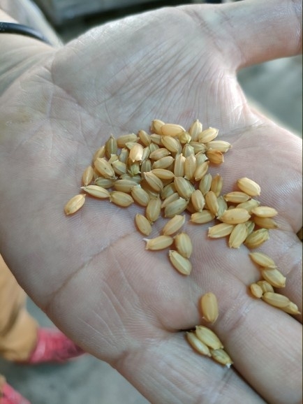 見極める基準を聞いてみたところ、写真のように種籾の頭から少しだけ白い目が出だした時が