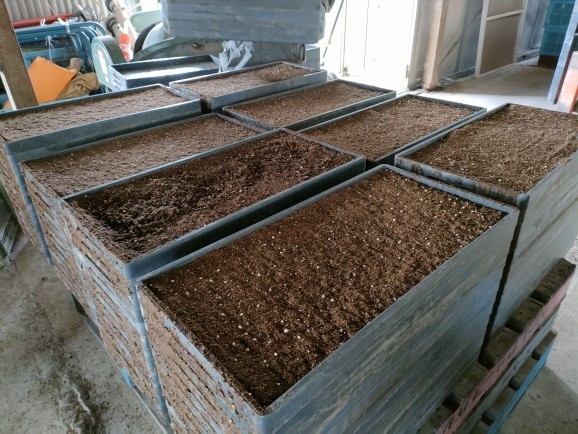 完成した育苗箱は別の場所に移され、1週間ほど育てられます。