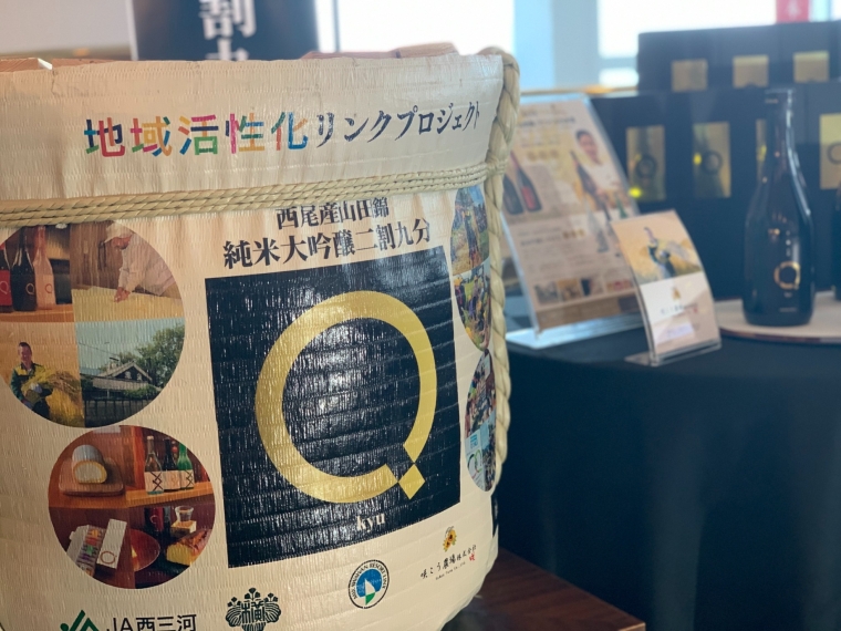 「純米大吟醸Q二割九分」は、“西尾産「山田錦」純米大吟醸酒で地域ブランドの向上“を目指したSDGsの取り組みによる日本酒となっており、西尾市初となる「山田錦」を積年良土の理念を持つこだわりの農家「咲こう農場」様が“特別栽培米”としてつくり、地元横須賀小学校の児童に田植え体験や稲刈り体験を通してお手伝いいただき、醸造を西尾市にある120年の歴史を持つ酒蔵「尊皇蔵元」様が行いました。