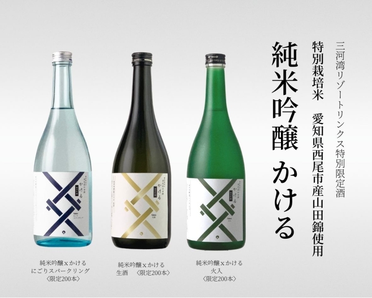 「純米吟醸Xかける」は、リンクスの唎酒師 犬塚萌日さんが「日本酒に馴染みのない方にも楽しんでいただけるお酒」を目指し、咲こう農場さん、尊皇蔵元さんとつくる純米吟醸酒です。西尾市初となる山田錦は咲こう農場様に安心・安全な特別栽培米として作っていただきました。日本酒づくりでは、130年の歴史を持つ尊皇蔵元の杜氏と唎酒師の犬塚さんが香りや味について検討し、りんごの果実を思わせる華やかな香りで日本酒としては低めのアルコール14度、甘味を強くし、日本酒初心者や女性の方にも楽しんでいただける味わいとなっています。