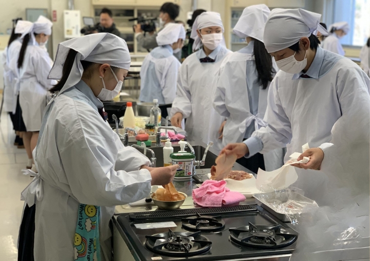 持続可能な開発目標の実現に向けた取り組みの一環として、愛知県立吉良高等学校の生活文化科の2年生の生徒たちと日本酒造りの副産物である白ぬか(米粉)を活用した料理レシピの開発を行いました。