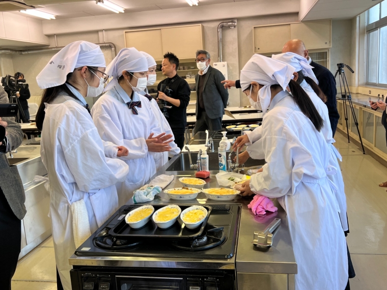 生徒からは「米粉を使用したチキン南蛮」や「米粉を使用したグラタン」が提案され、リンクスのフレンチ料理長が監修をしました。