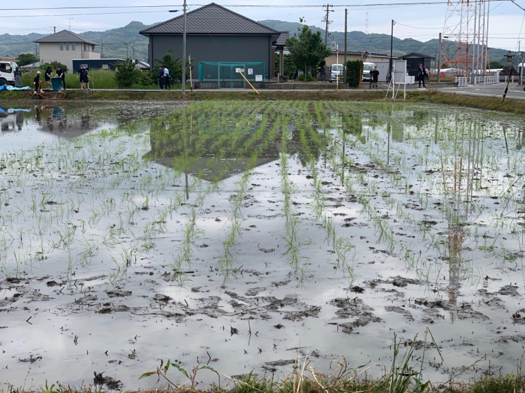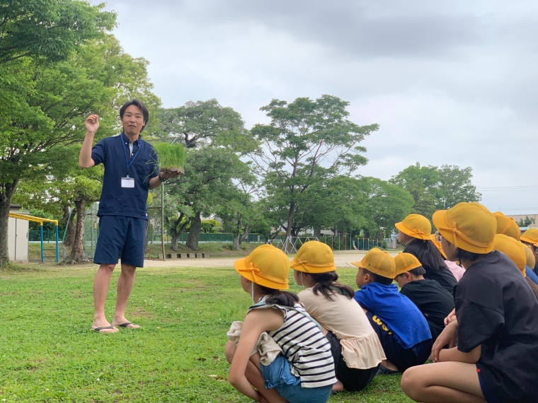 先月15日に今年度の横須賀小学校のSDGsの取り組みとしてSDGsについての授業を開催いたしました。この授業ではSDGsの目標や今世界ではどのようなことが起きているかを学び、自分たちにできる事を考えました。今回は第2弾として授業で学んだことを活かした田植え体験をおこないました。