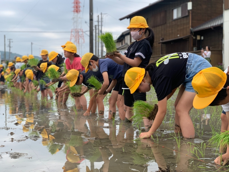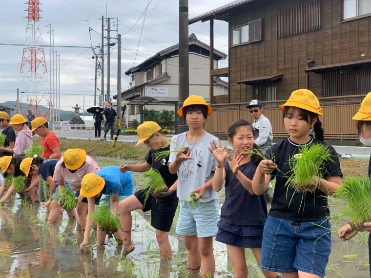 5月22日(木)に今年で3回目となる西尾市立横須賀の児童(小学校5年生71名)の田植え体験を実施いたしました。